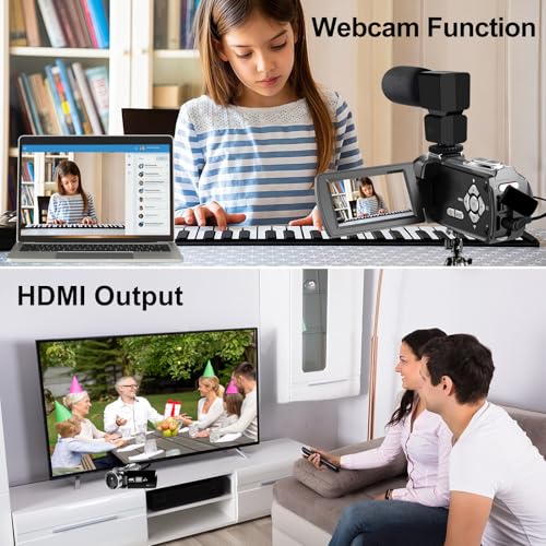 【WiFi & Webcam Function】The camcorders video camera 4K supports for video chatting and live streaming when used as webcam. The 4k vlogging camera can be connected to the mobile phone through the WiFi function to download and share the photos and videos in the camera.