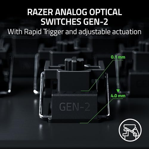 “Blitz through the competition with the Razer Huntsman V3 Pro 8KHz—designed for pros with ultra-fast, highly responsive performance. Featuring Razer Analog Optical Switches Gen-2, this keyboard offers Rapid Trigger for lightning-fast repeated inputs and an adjustable actuation range of 0.1–4.0 mm, ensuring precision with every keystroke. With a 100-million keystroke lifespan, it’s built for durability and performance. Razer Snap Tap technology prioritizes the latest input between two selected keys, allowing for near-instant directional changes and faster execution. Experience true 8000 Hz HyperPolling for near-zero latency, offering a polling rate 8 times faster than the industry standard, giving you a split-second advantage in every game. Make quick onboard adjustments with an LED array indicator to fine-tune actuation height or Rapid Trigger sensitivity, and save settings directly to the keyboard with no software needed. Enjoy an optimized keystroke feel with individually lubricated switches and thick foam dampening to deliver smooth, muted acoustics, keeping you in your flow state. The multi-function digital dial and dedicated control buttons provide convenient management, allowing you to adjust volume and analog switch settings, plus media control and custom macros, all at your fingertips. Elevate your gaming with the keyboard designed to meet the demands of the world’s best players.”