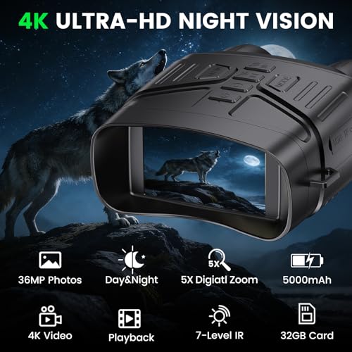 Night Vision Goggles, 4K Night Vision Binoculars for Adults with 5000mAh Battery, 3″ HD Screen & 32GB Card for Hunting, Wildlife Observation, Security