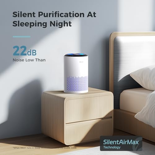 AROEVE Air Purifiers for Bedroom Home, Air Purifier For Smoke Pollen Dander Hair Smell Air Cleaner with Sleep Mode Speed Control For Bedroom Office, MK01- White(Available for California)