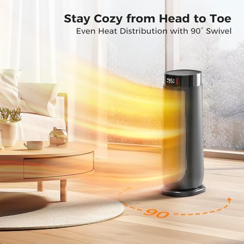 BREEZOME Space Heaters for Indoor Use, 1500W, with Thermostat, 24H Timer, 90° Oscillating, Quiet, Portable, PTC Ceramic, with Remote, Fast Safety Heat for Home Bedroom (BLACK)