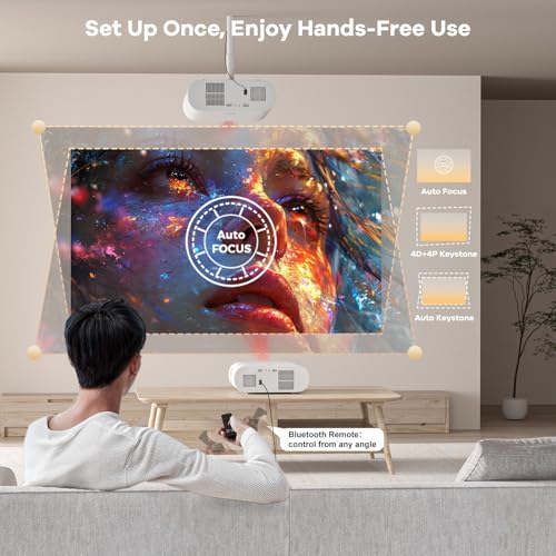 【Built-in AI Chip Auto-System: Hands-Free Smart Projection】 The E30Max portable projector features a cutting-edge AI-driven chip that activates instantly. Lens cover opens automatically on power-up, while simultaneous auto-focus and ±50° vertical keystone correction deliver perfect setup in just 3 seconds-10x faster than manual projectors (30+ seconds). Experience 98% user satisfaction as it intelligently maintains the original aspect ratio during movement, eliminating image distortion. It retains motorized focus and 4-point keystone correction, letting you tailor clarity and angles to your specific needs. Smart automation meets cinematic perfection-now with personalized control