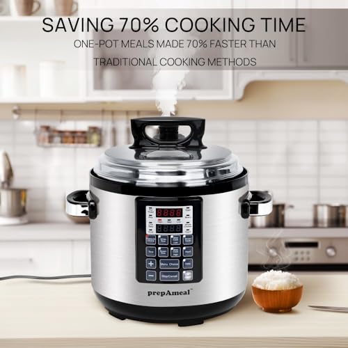 9-IN-1 Multi-Functional Pot : 1 Electric Pressure Cooker replaces 9 common kitchen appliances including Pressure Cooker, Slow Cooker, Rice Cooker, Brown/Sauté Pan, Yogurt Maker, Steamer, Warmer, Soup and egg cooker; It combines 9 functions in 1, saving 70% cooking time to support your busy lifestyle