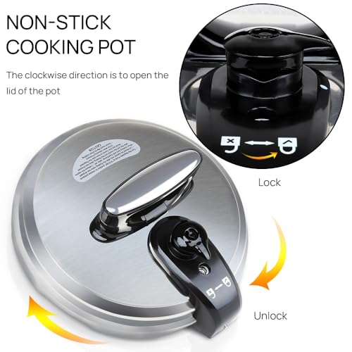 6QT Non-Stick Cooking Pot : Removable cooking pot is made from food grade 304 stainless steel, non-stick coating;The gasket captures the flavour, nutrients and aromas of the food; Suitable for a family of 4 to 6