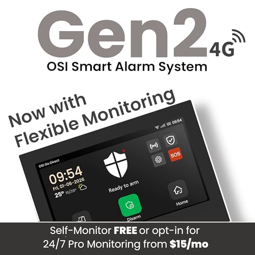 OSI Alarm System Gen 2 (4G), 11pc, DIY, Motion & Entry Sensors, Wireless Siren, Remotes, App & Alexa Compatible Self Monitor(No Monthly Fees) or 24/7 Alarm Monitoring (as Low as $15/mo)