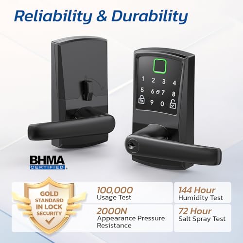 Adapt to Any Need: The lock supports fingerprint, password, key, app, and key fob unlocking. With an IP65 waterproof rating and multiple tests for durability, it’s designed for various environments, perfect for both exterior and interior doors.