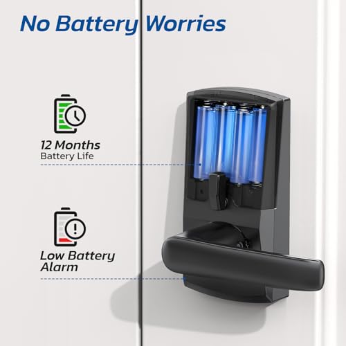 Security and Durability: Made from tough aluminum alloy,this lock is designed to withstand tampering and resist violent break-ins, ensuring your home stays secure.With 4 AA battery, offering up to 12 months of reliable use.Tested for superior performance and long-lasting durability.