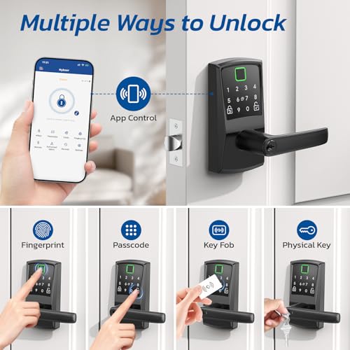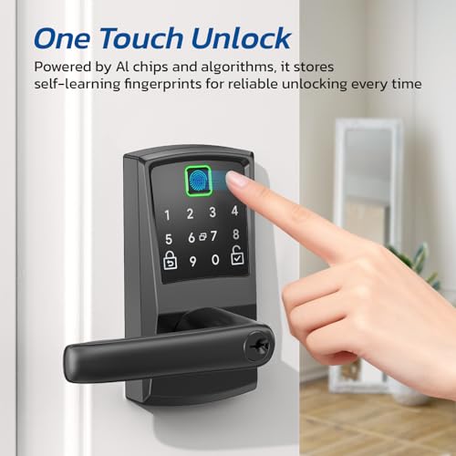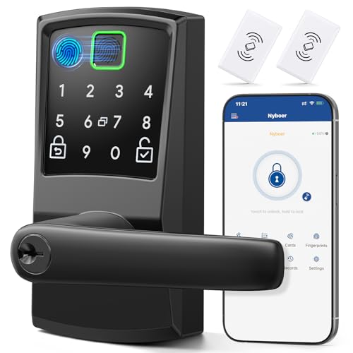 Keypad Smart Door Lock with Handle, Fingerprint Keyless Entry Digital Lock for Front Door,Nyboer Electronic Code Knob, Matte Black, Modern Style, Easy Installation,Deadbolt Alternative