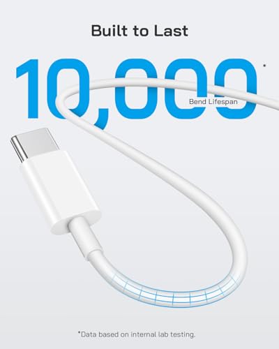 [Durable Design] This charger block features a solid construction, and the charger cord is lab-tested to withstand 10,000 bends. What’s more, the charger cord’s USB-C ends have an additional layer of protection to further enhance durability and prevent fraying.